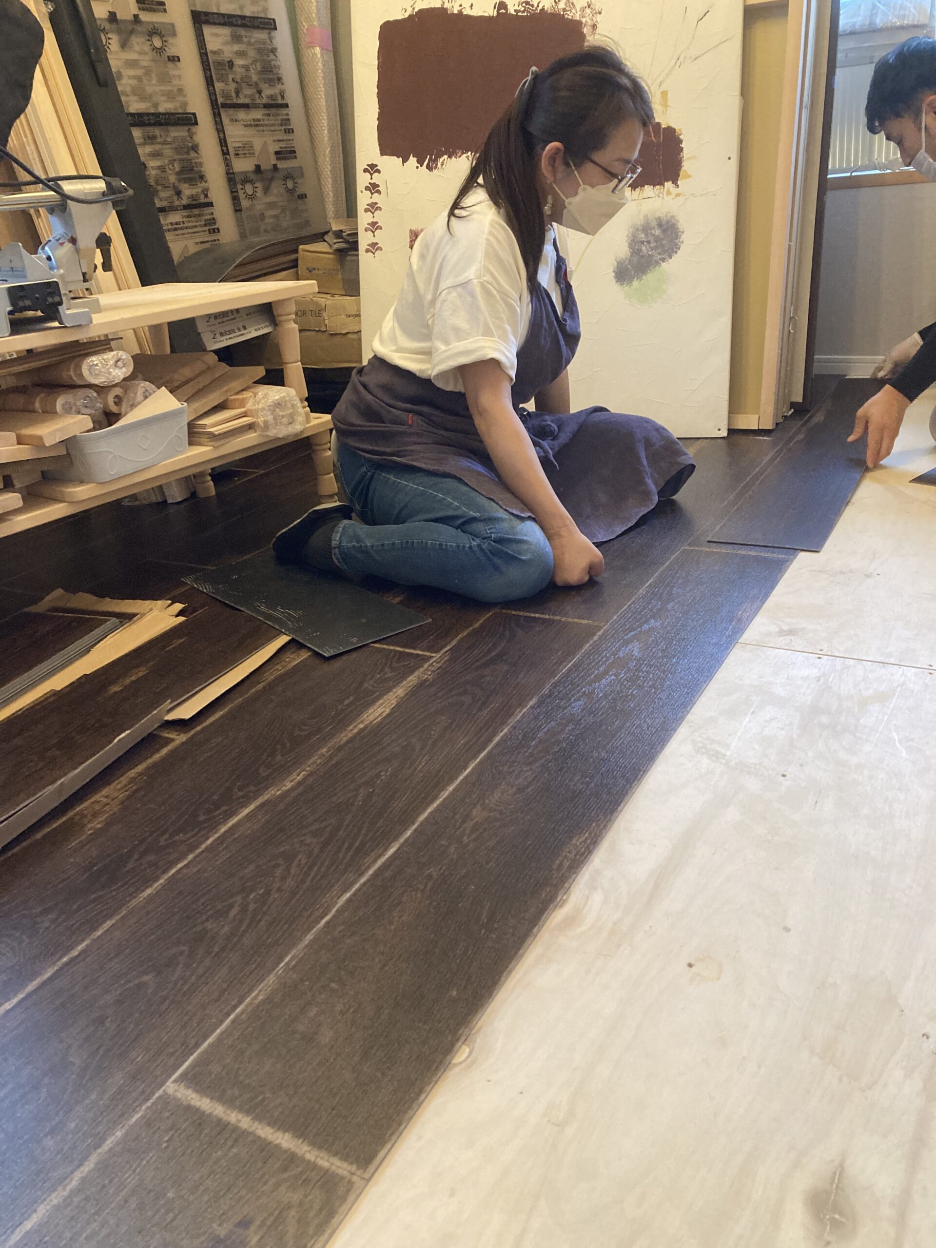 タイル・壁紙に続きいよいよお部屋のイメージを決定ずけるとも言われている「床」の施工を実践していただきました。