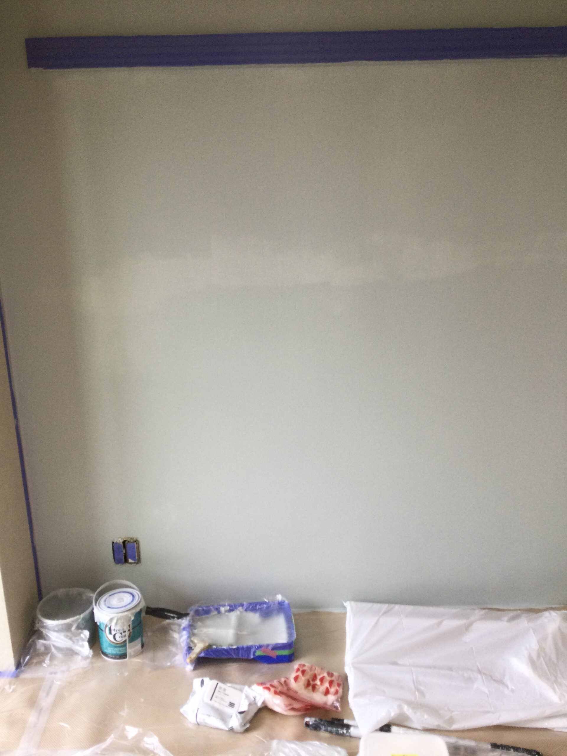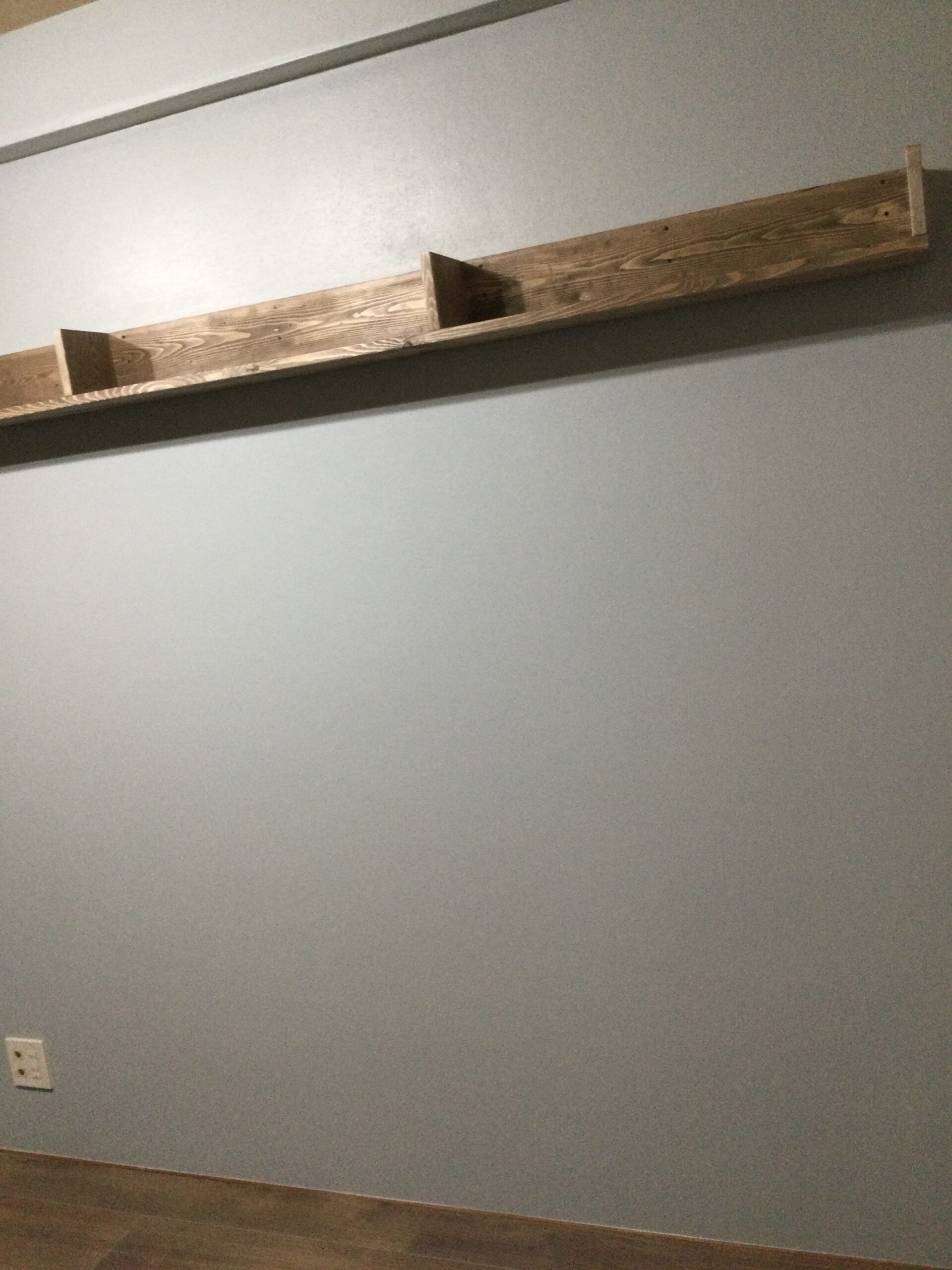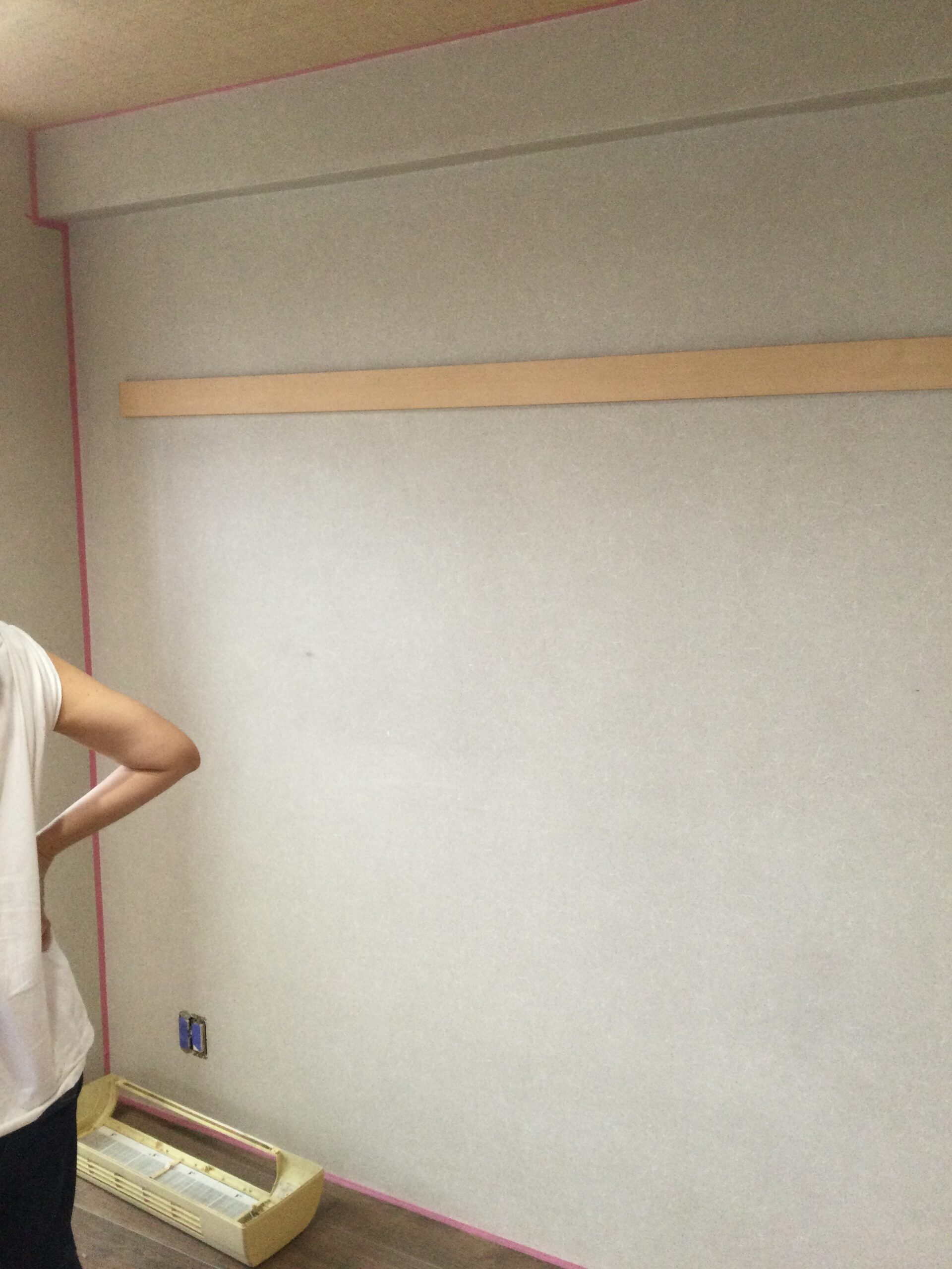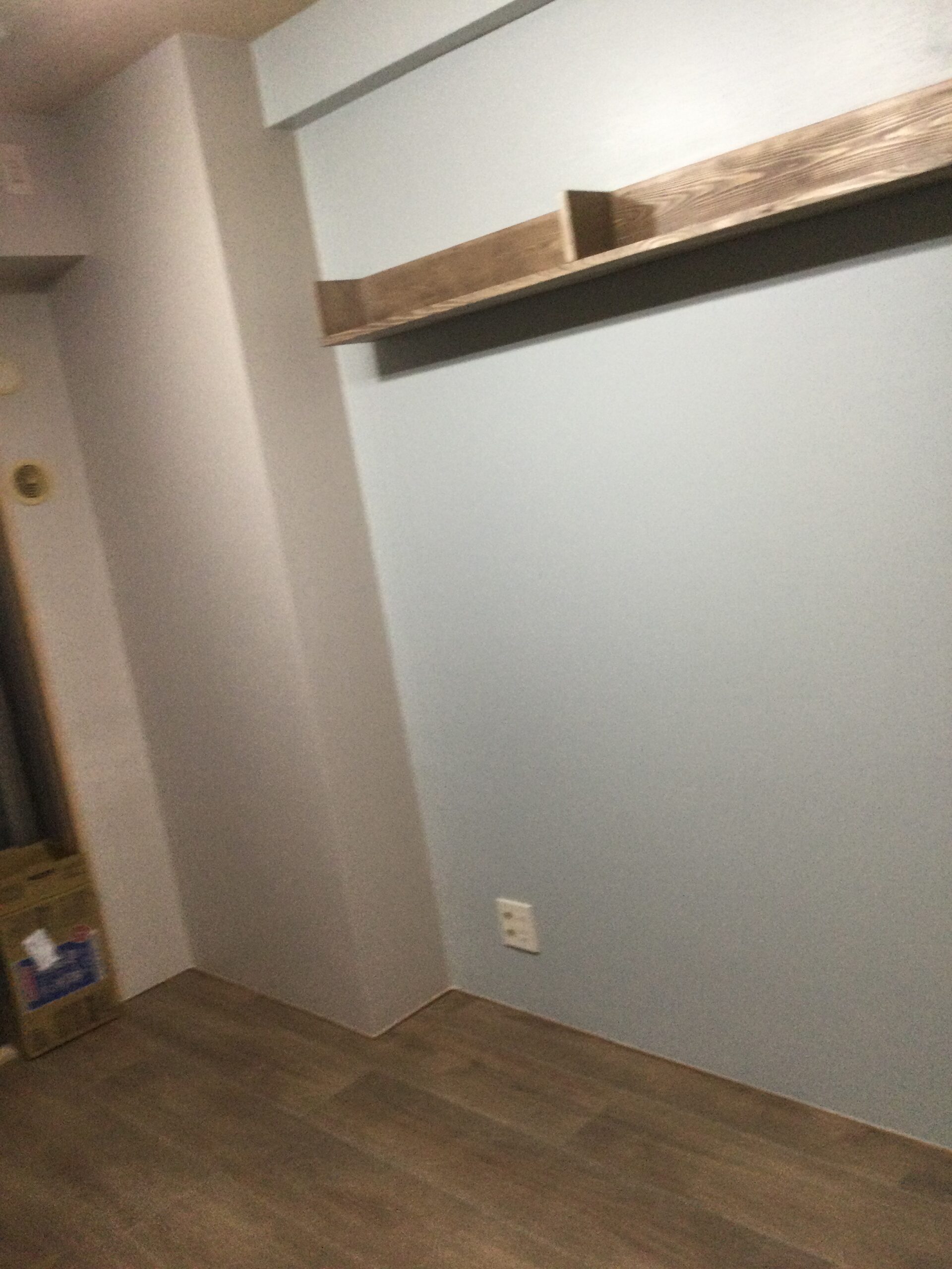 写真ではわかりづらいですが、棚板を設置する壁面は薄いブルーグレー系のカラー、そのほかの壁面はベージュピンクのようなお色です。