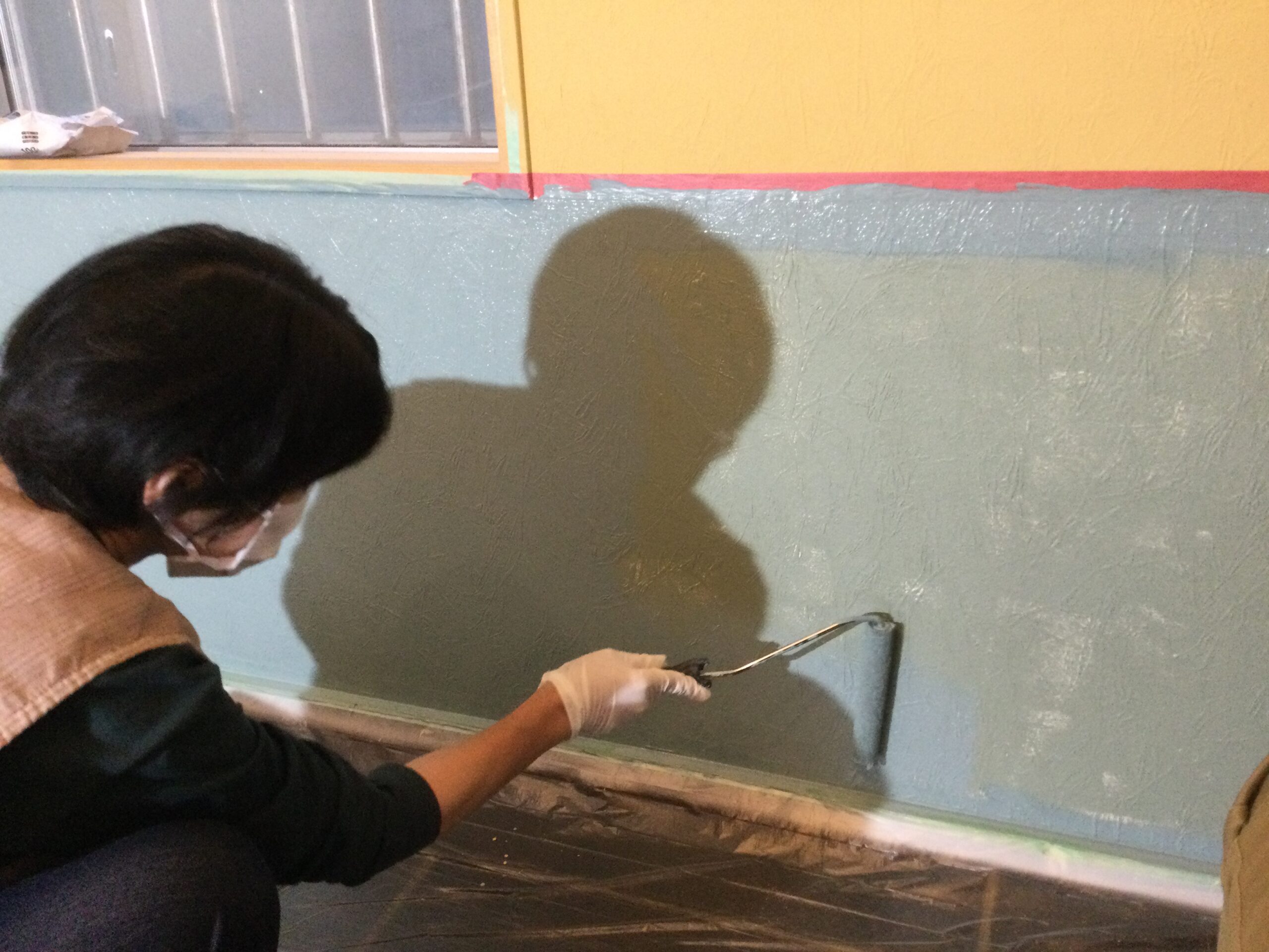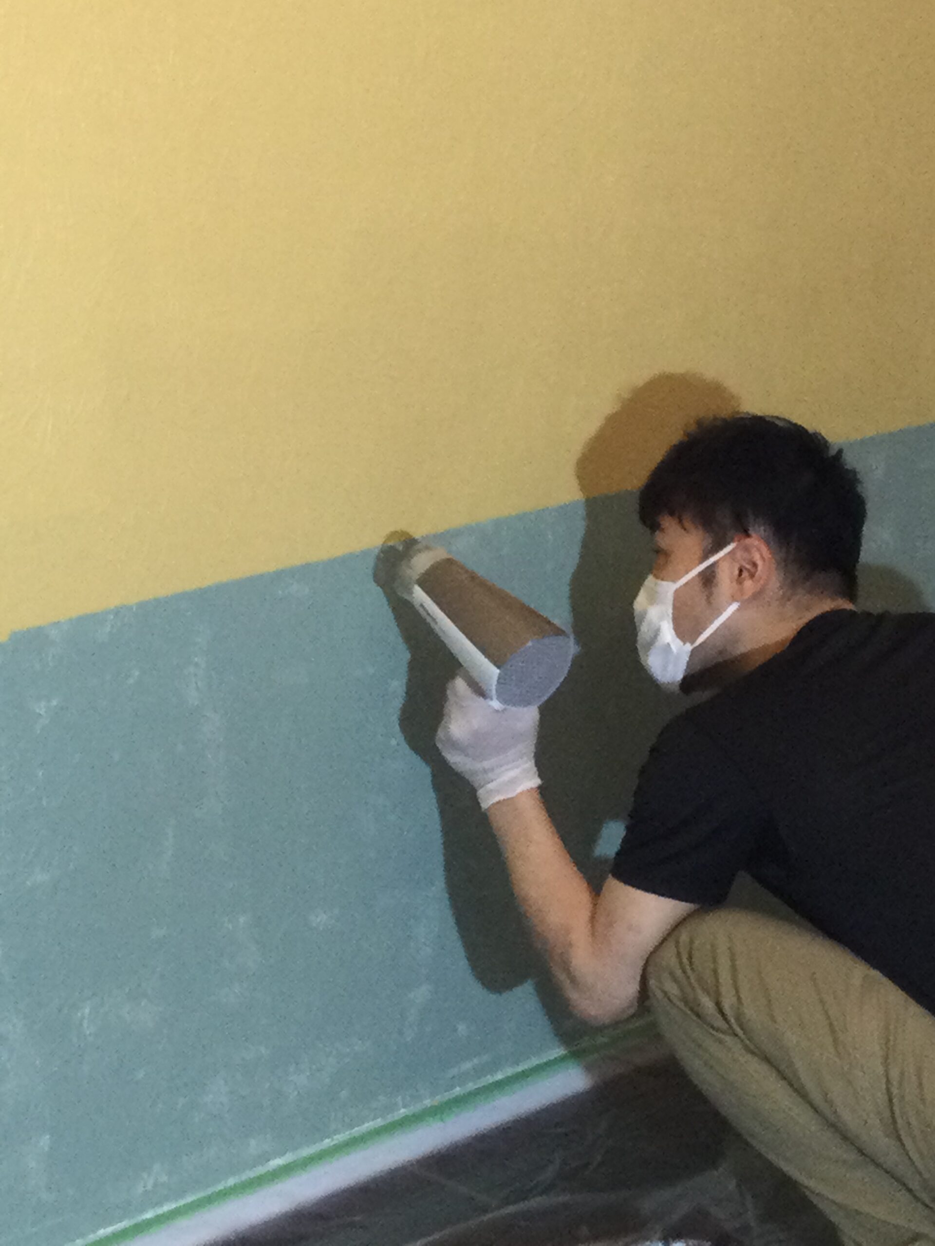 壁をペイント中