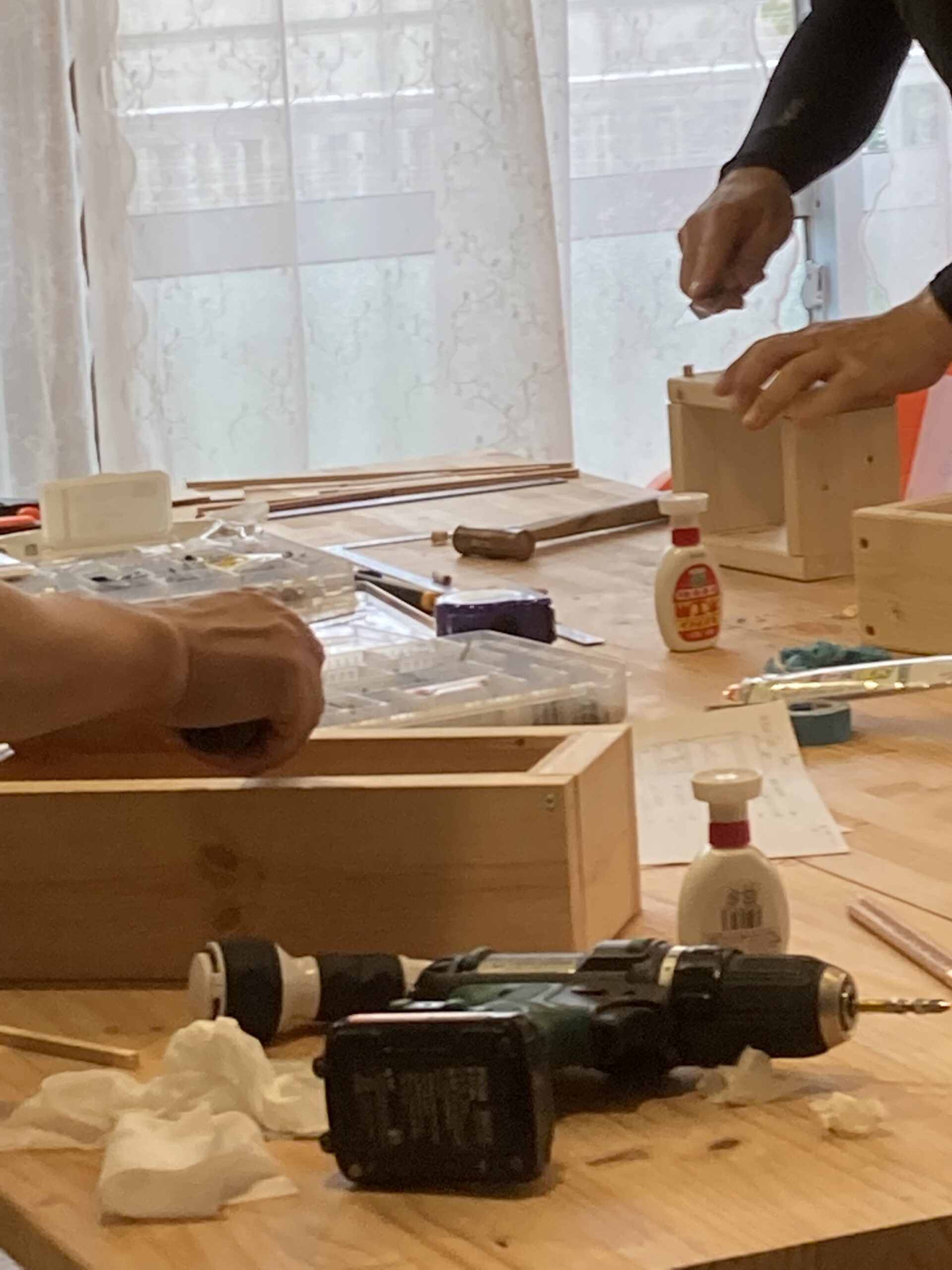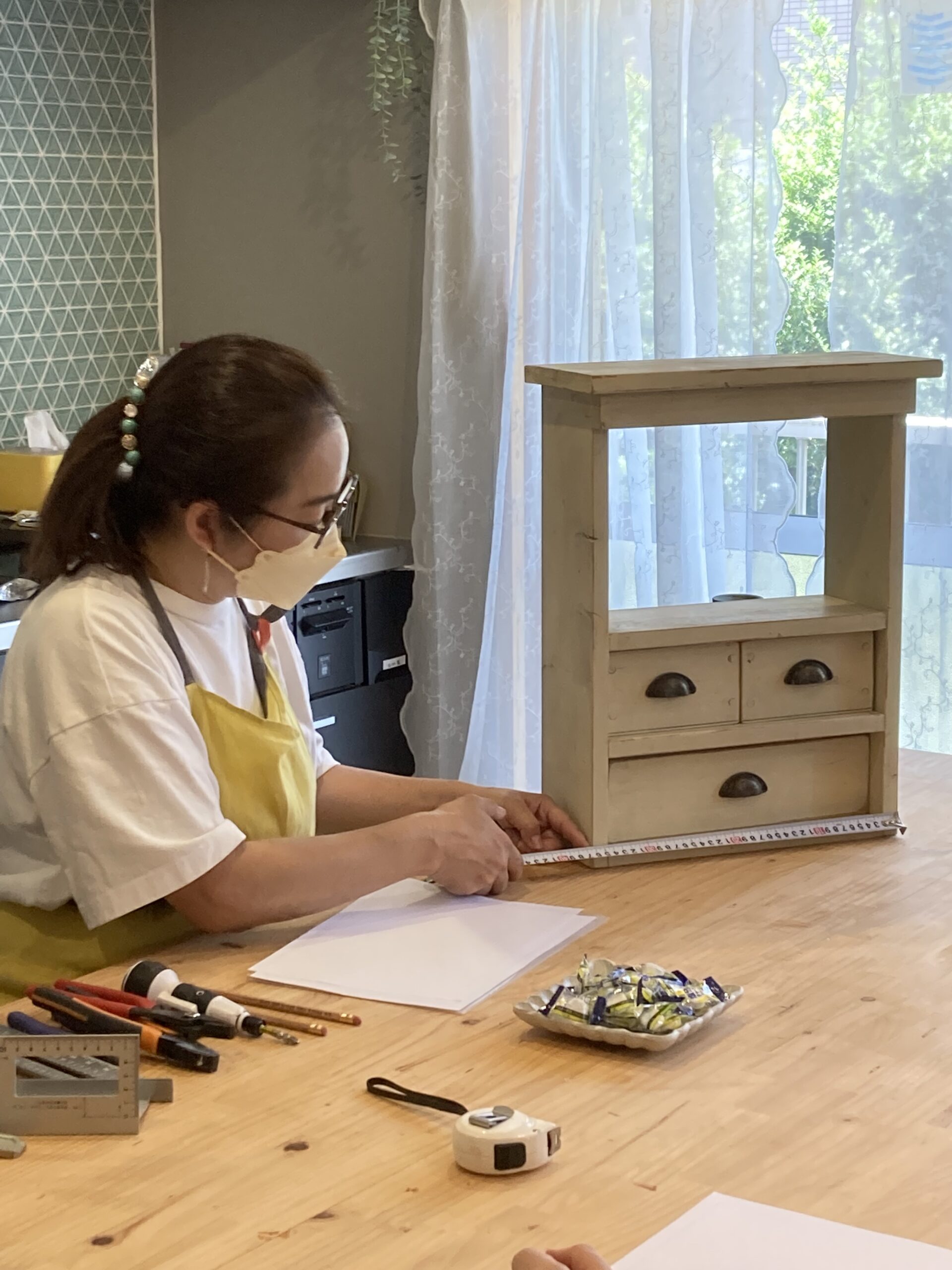 デザバリュコースの後半は前回(1期)同様、小さな引き出し付き収納棚作成です。
