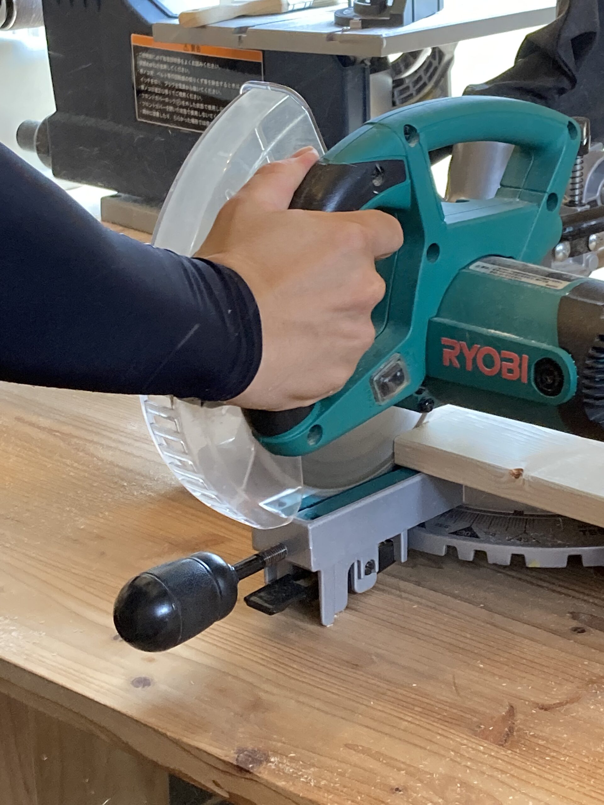 多種多様な工具の説明にもしっかり真面目に耳を傾け、いざ、丸鋸・スライド丸鋸を使ってカット!