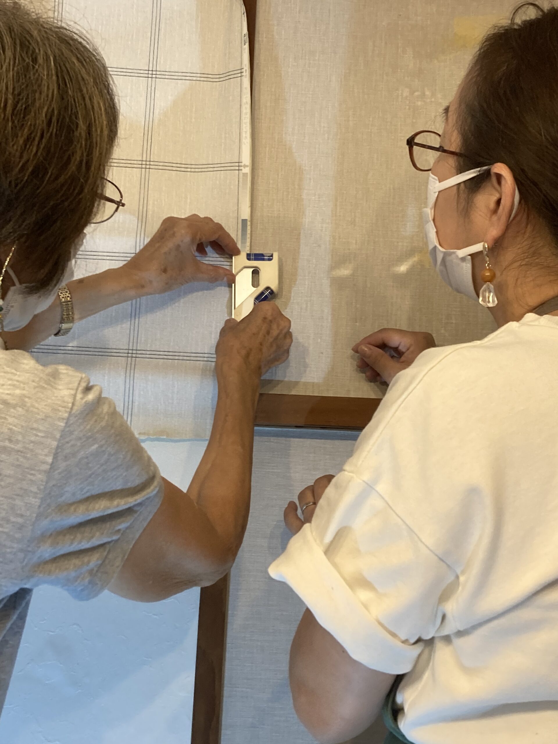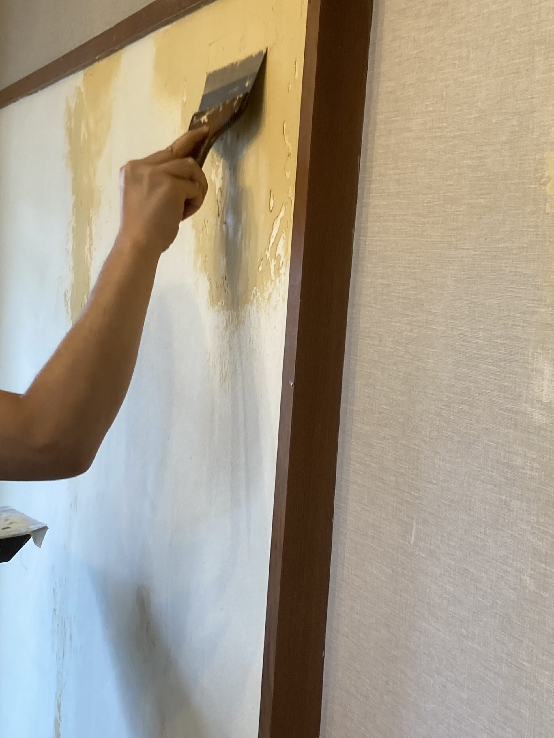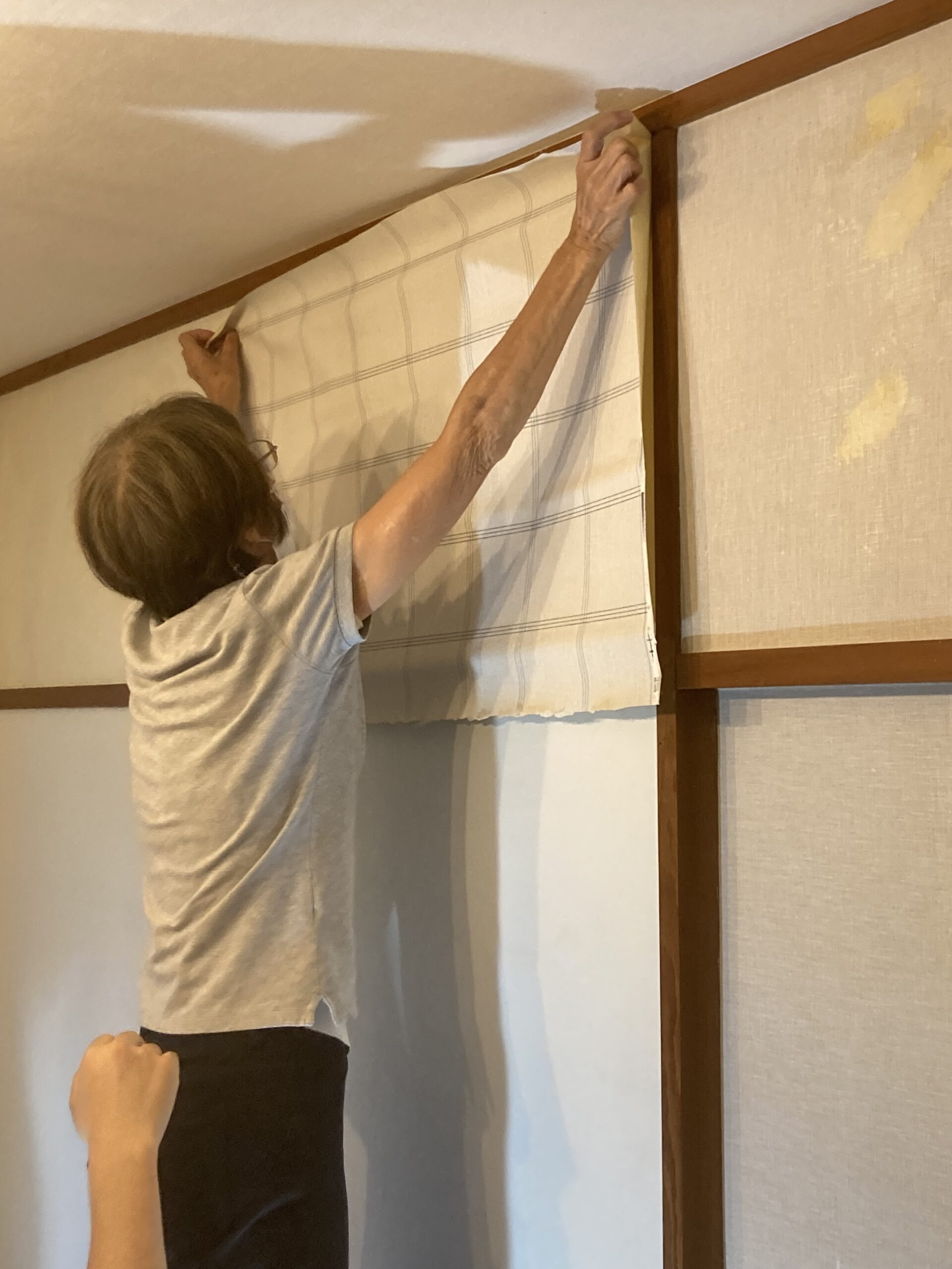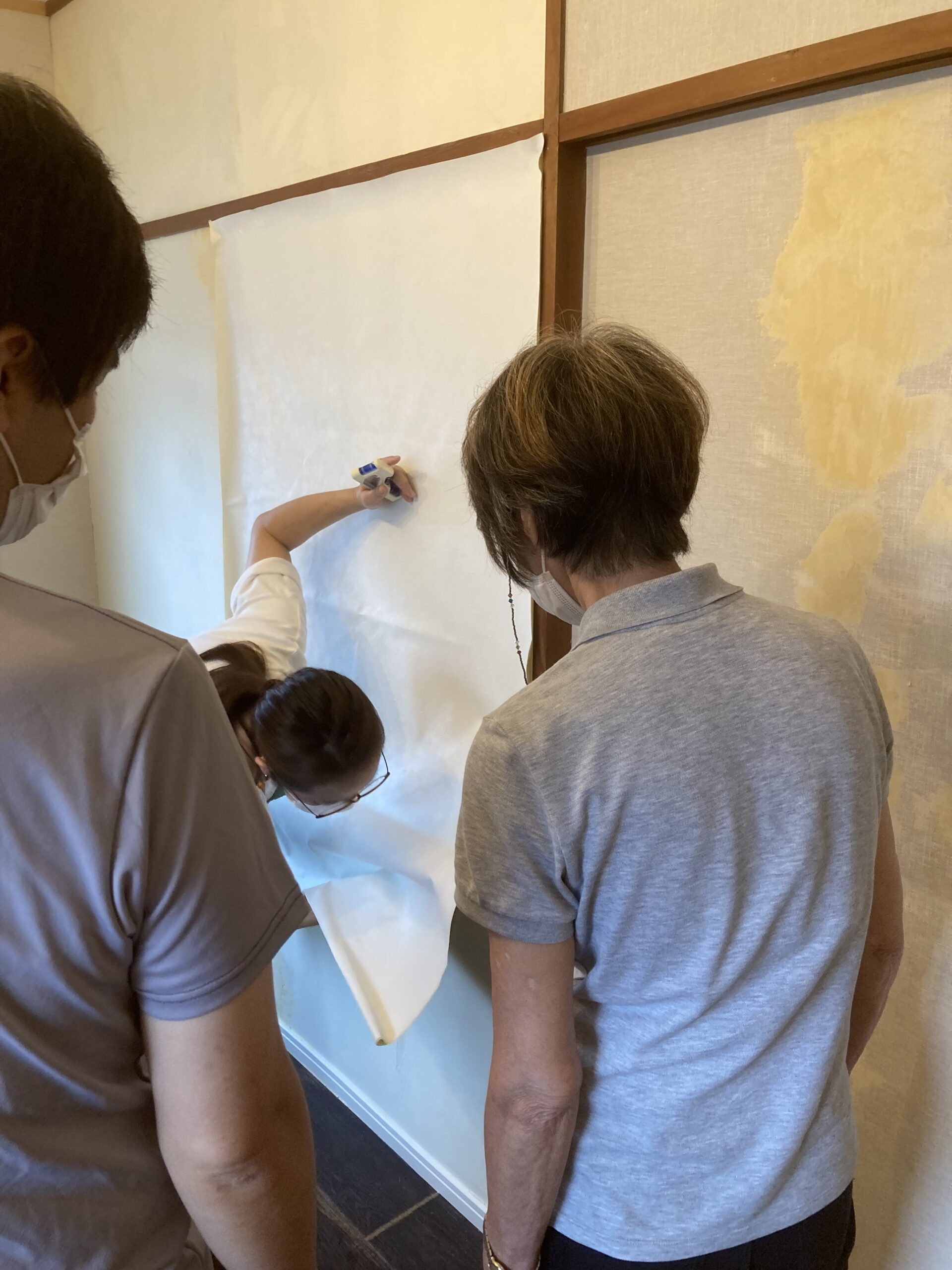 国産壁紙は幅が広いので結構体力勝負です。お母さまも息子さんに負けず劣らず頑張りました!