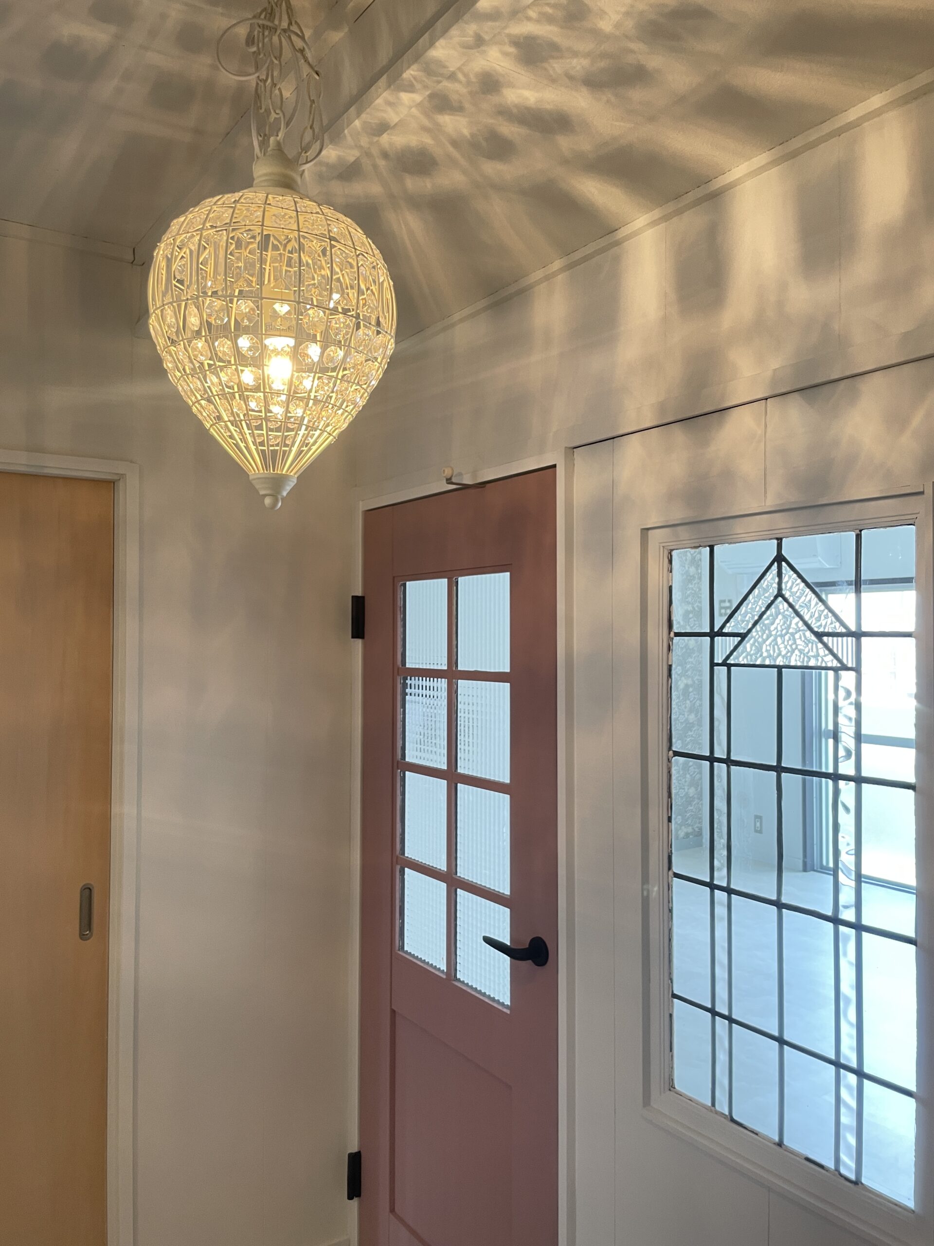 リビングへと続くドア、玄関側はピンク、リビング側はブラックに塗り分けてます。
